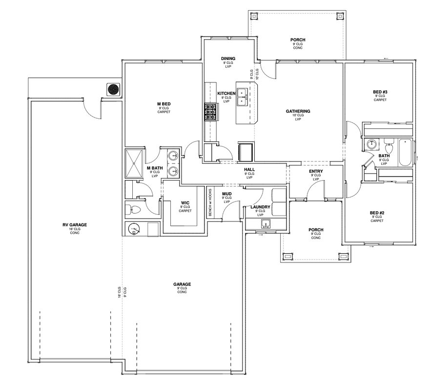 The Jessie is a flexible plan designed for everyday comfort and easy entertaining. With approximately 1467 sq ft and 3 bedrooms / 2 baths, it balances space and livability.